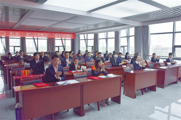 為紀(jì)念中國共產(chǎn)主義青年團(tuán)成立100周年,4月26日,新區(qū)公司團(tuán)委在甘肅建投工業(yè)產(chǎn)業(yè)基地北廠區(qū)舉行慶祝建團(tuán)一百周年“五四”表彰會暨團(tuán)員大會,新區(qū)公司紀(jì)委書記,新區(qū)公司、科工集團(tuán)監(jiān)事會主席溫鴻武,全體團(tuán)員、優(yōu)秀青年代表參加,會議由新區(qū)公司黨委工作部副部長、團(tuán)委副書記趙瑞主持。