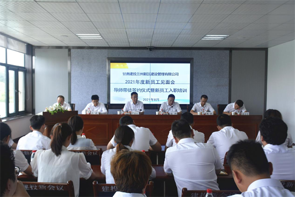 為使新入司員工能充分了解新區(qū)公司的發(fā)展概況、文化理念及相關(guān)制度體系,培養(yǎng)良好的工作心態(tài)及職業(yè)素養(yǎng),盡快勝任本職崗位,快速融入到企業(yè)生產(chǎn)經(jīng)營及管理工作,8月11日,新區(qū)公司舉辦了新員工見面會、入職培訓(xùn)暨導(dǎo)師帶徒簽約儀式。公司黨委書記、董事長嚴(yán)永紅、總經(jīng)理殷翔等領(lǐng)導(dǎo)班子成員,各部門負(fù)責(zé)人及負(fù)責(zé)培訓(xùn)人員,2021年新入職員工及其導(dǎo)師參會,會議由總經(jīng)理殷翔主持。